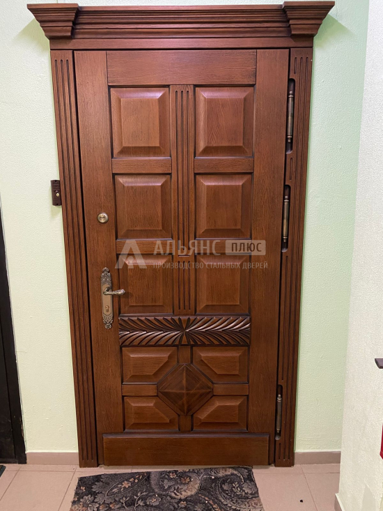 Эта модель создана для тех, кто ценит солидность и аккуратный внешний вид без излишней вычурности. Дверное полотно из профильной трубы 50×25 мм и листа стали толщиной 2 мм обеспечивает высокий уровень прочности и надёжности, а двойной контур уплотнения защищает от сквозняков и уличного шума. Поверхность отделана плитами МДФ — материалом, который не боится перепадов температуры, устойчив к влаге и долго сохраняет аккуратный вид. Входная металлическая дверь для дома с двумя вставками №11 выделяется лаконичным дизайном и возможностью выбрать направление и тип открывания под планировку помещения. Система запирания с двумя замками — сувальдным и цилиндровым — обеспечивает надёжную защиту, а возможность установить умный замок или видеодомофон делает дверь не просто прочной, а по-настоящему современной. Входная металлическая дверь для дома с двумя вставками №11 по выгодной цене: бесплатная доставка и установка в Котельниках, изготовление под размер вашего проёма, с возможностью изменить конструкцию и комплектацию.